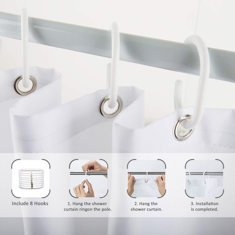 【What’s Included】: One shower curtain and 7 pack plastic shower hooks
