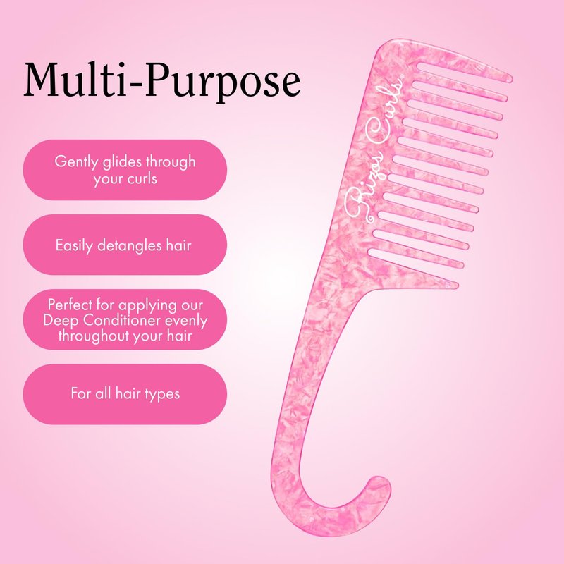 Rizos Curls Hanging Shower Comb, Detangle & Distribute Conditioner In Shower, Gentle On All Curl Types, Easy to Hang & Use, Pink
