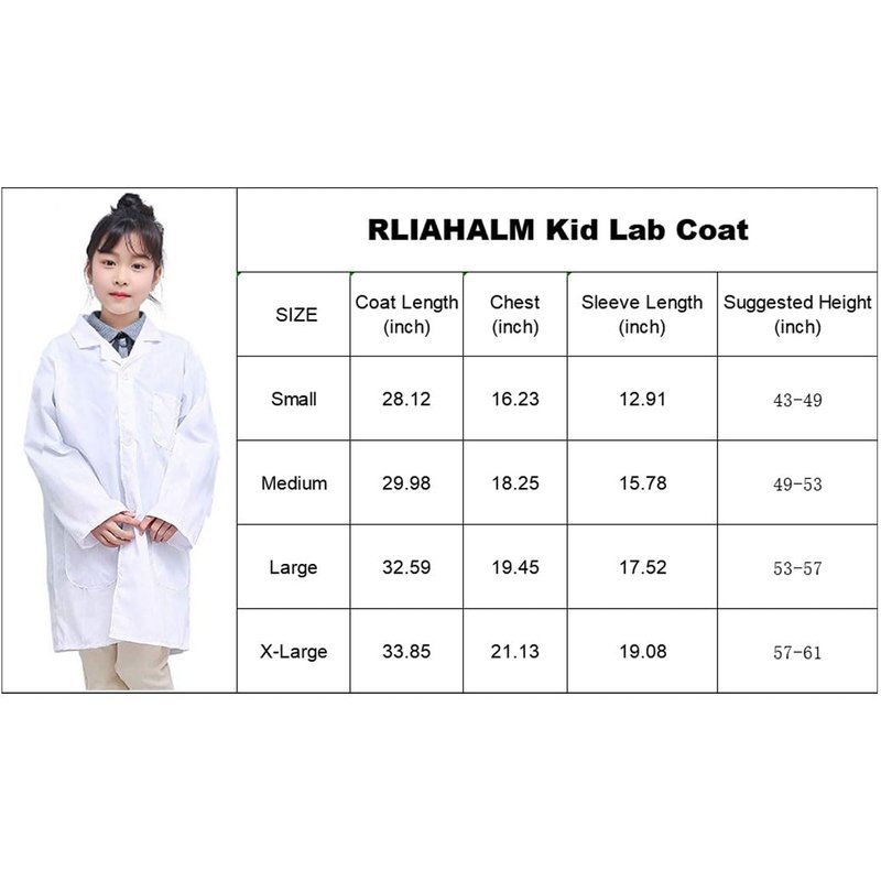 RLIAHALM Kid Lab Coat Doctor Unisex Role Play Scientist Halloween Career Day Dress Up Costume for boys and girl (Medium,White)