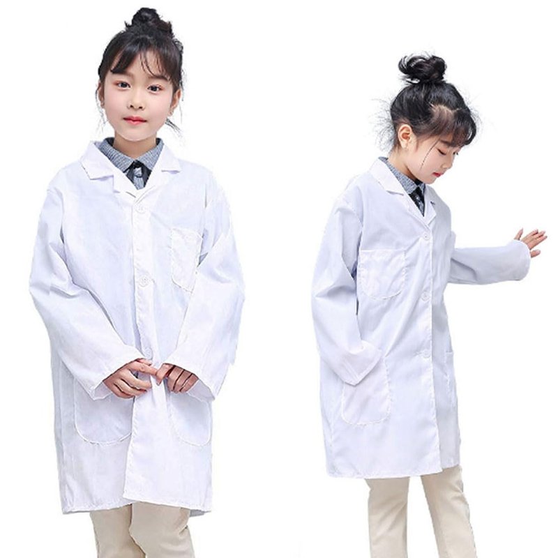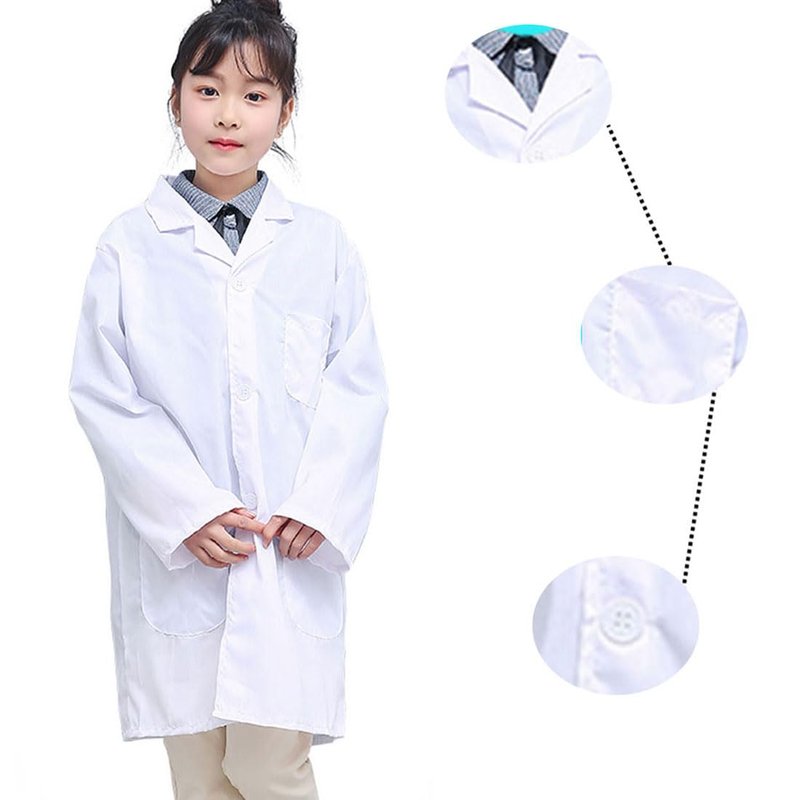 Lab Coat Laboratory Coat Protective Clothing White Coat with three Pockets, Suitable for Kids to do Experiment in Schools, Cosplay Doctor, Nurse, Scientist, Biologist, Cook, Pet Doctor, Work Wear for Gardening and Cooking, Halloween DIY Costumes, etc