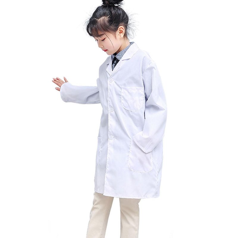 Lab Coat Laboratory Coat Protective Clothing White Coat with three Pockets, Suitable for Kids to do Experiment in Schools, Cosplay Doctor, Nurse, Scientist, Biologist, Cook, Pet Doctor, Work Wear for Gardening and Cooking, Halloween DIY Costumes, etc