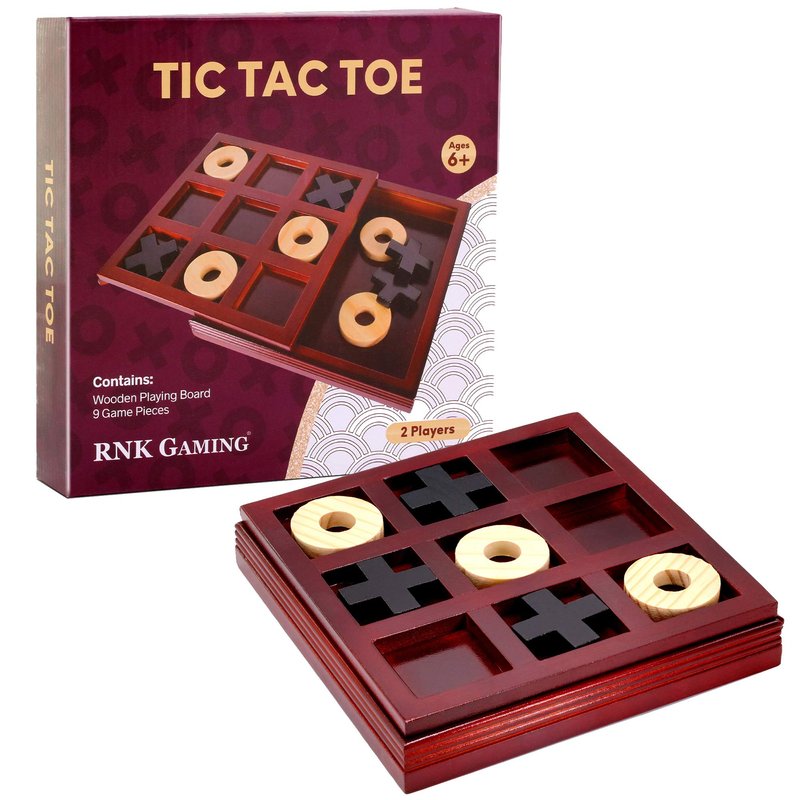 RNK Gaming Wooden Tic Tac Toe Game. Looking for a simple yet fun game to play with your loved ones? Tic Tac Toe is an all-time classic that's easy to learn and can be enjoyed by all ages. With a beautiful wooden game board and sturdy wooden pieces, you can connect with your friends, children, or grandchildren while having a blast playing this timeless game.