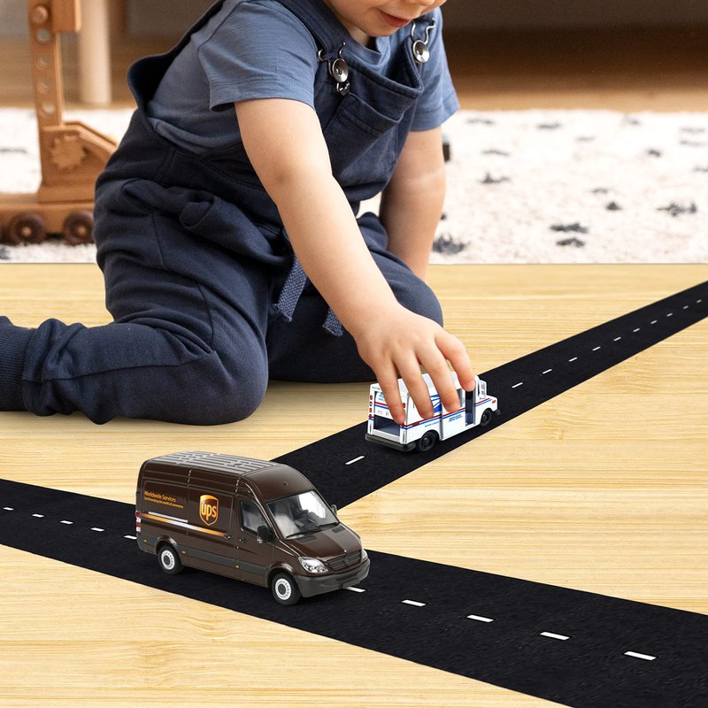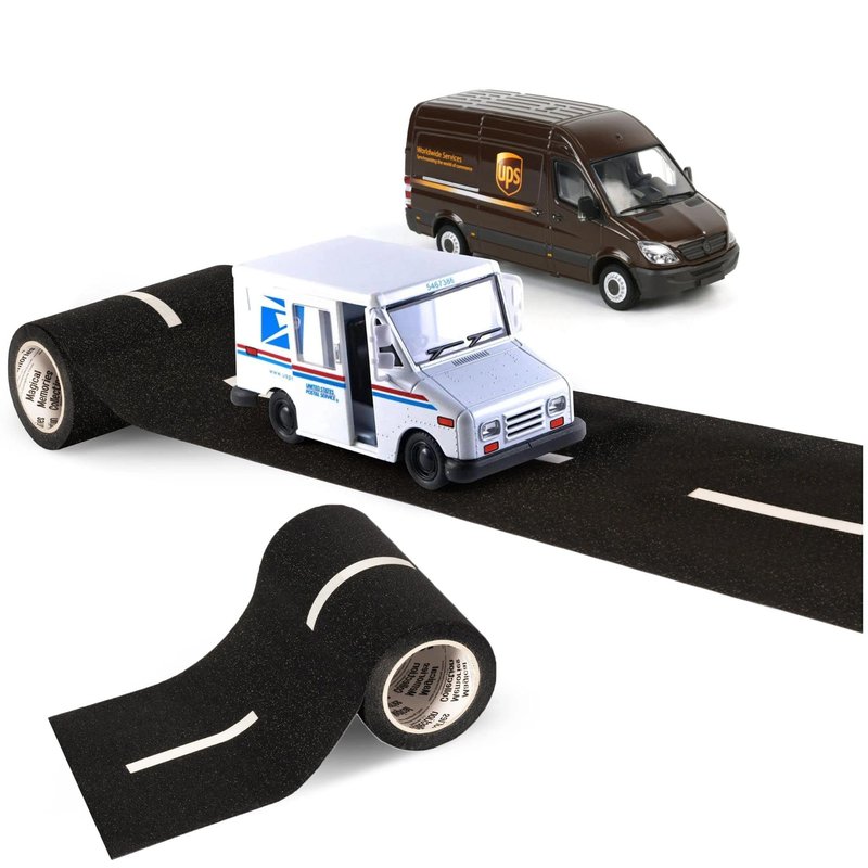 - TOY TRUCK & ROAD TAPE GIFT SET: Includes a 5-inch Diecast UPS and USPS Mail Truck along with Magical Memories Collection Real Asphalt looking Road Tape. Magical Memories Collection road tape for toy cars is carefully crafted to feature realistic details of real-life roads for both young children and adults to admire. This toy road and mail truck set will surely bring hours of make-believe fun on the road!