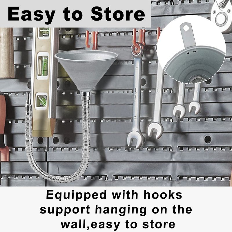 - [FUNNEL WITH FILTER] Metal funnel can effectively filter impurities. It can prevent impurities from entering so it can ensure the purity of the fuel.There is a threaded connection between the funnel and flexible hose.