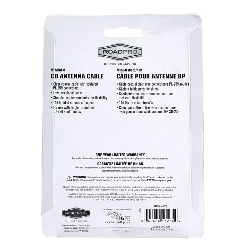 RoadPro 9' Mini-8 PL-259 Coaxial Cable