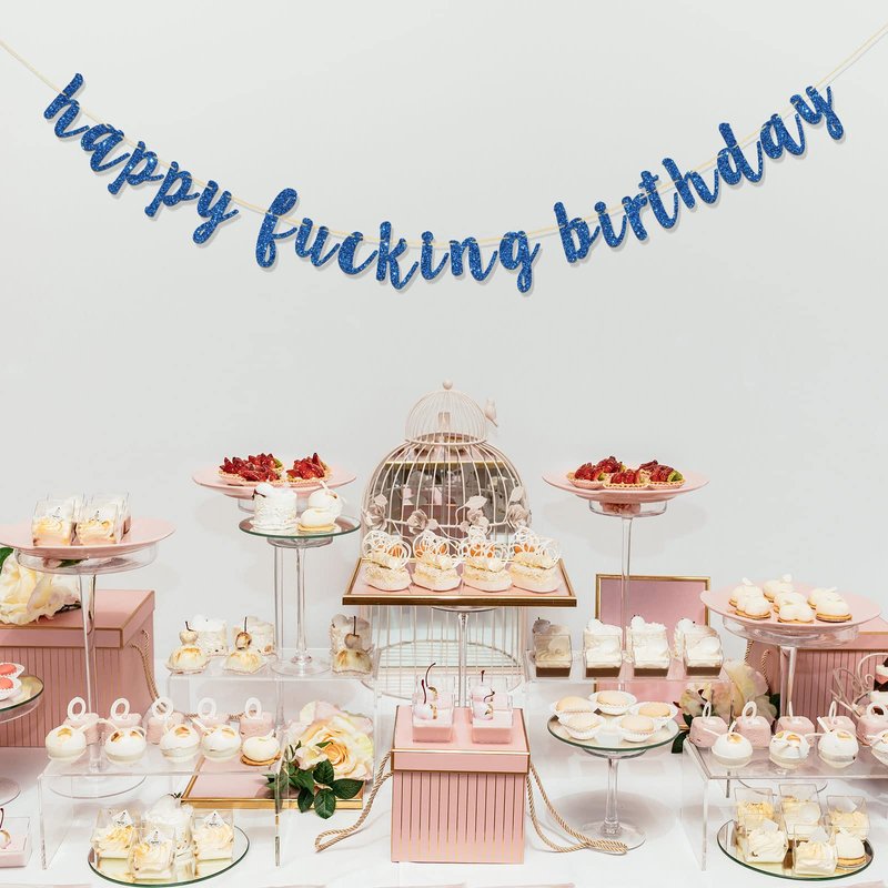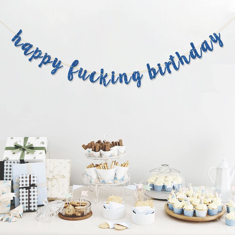 RoadSea Happy Fucking Birthday Banner - Funny Birthday Party Garland Supplies for Adult - Boy Girl Happy Birthday Party Decorations - Blue Glitter