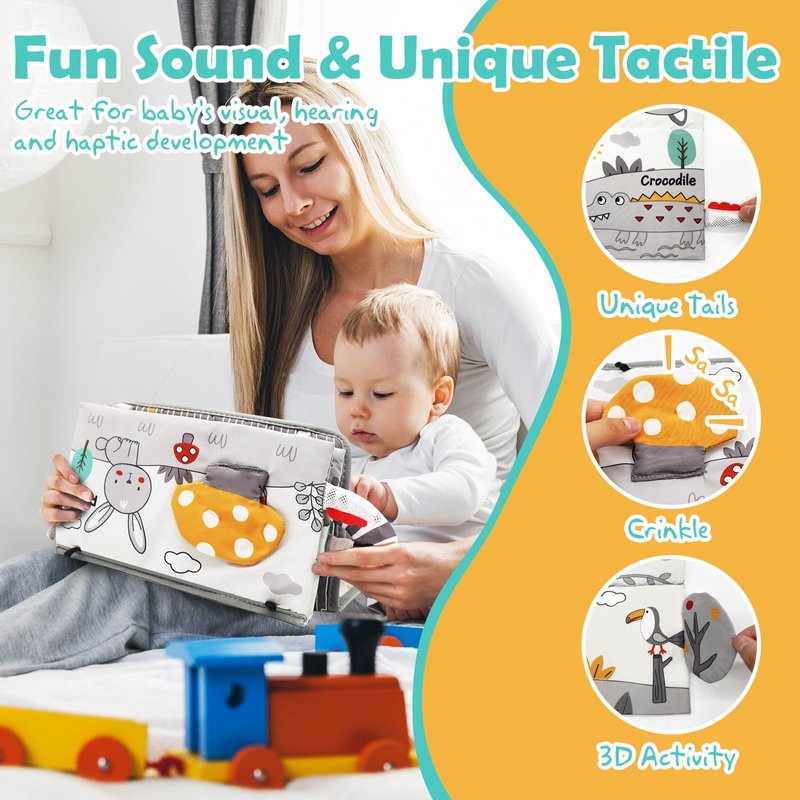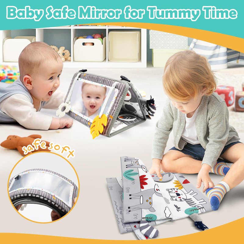 - Educational Baby Toys For Development - Combined with baby mirror and soft book, our tummy time toys help babies to explore the world. Rich colors adapt to the baby's changing visual development and are easier to attract the baby's eye. This developmental toys for babies add fun and interaction and help strengthen baby's leg and arm muscles in preparation for crawling