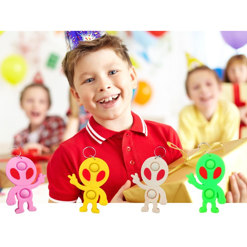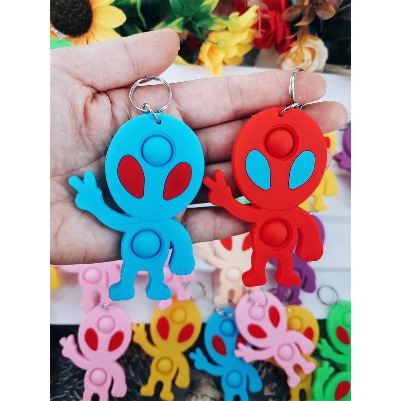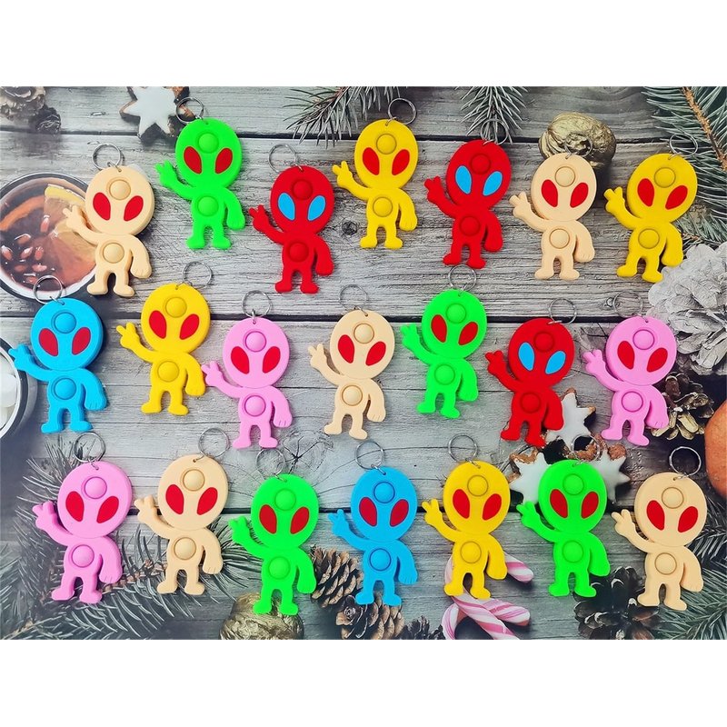 - 2,Made of silicone,package included:24 pcs Space Alien mini pop fidgets keychain