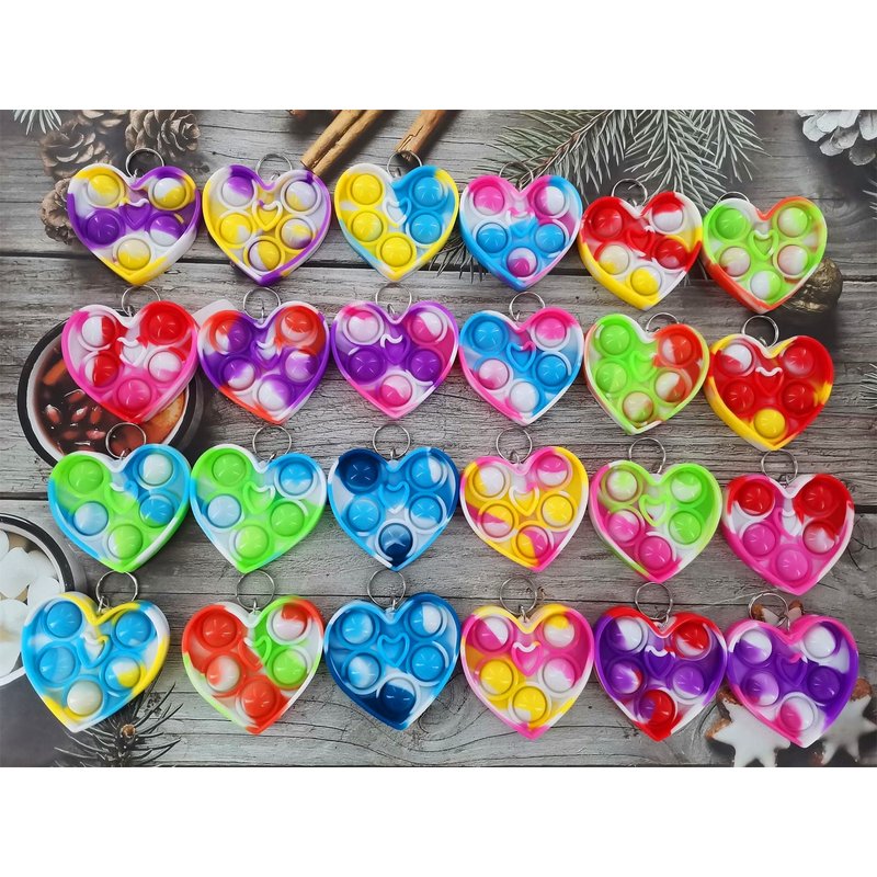 Roaqua 30 packs Bulk heart shape Mini Pop Fidget Key Chain,birthday Party Favors Small Valentine Wedding Party Favors and Classroom Student Gifts