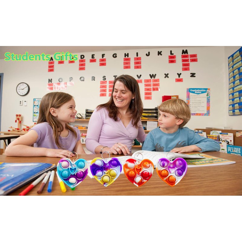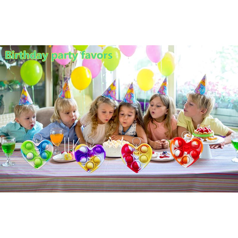 - 2,Made of silicone,package included:30 packs heart shape mini pop key chains,Random color to send