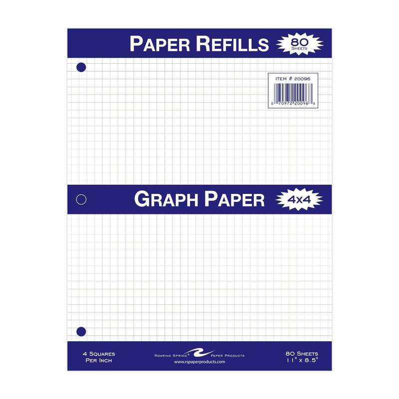 Roaring Spring Loose Leaf Graph Paper, 80 Sheets 8"x11" White 15#, 4x4 Graph Ruled Notebook Filler Paper, 3-hole Punched
