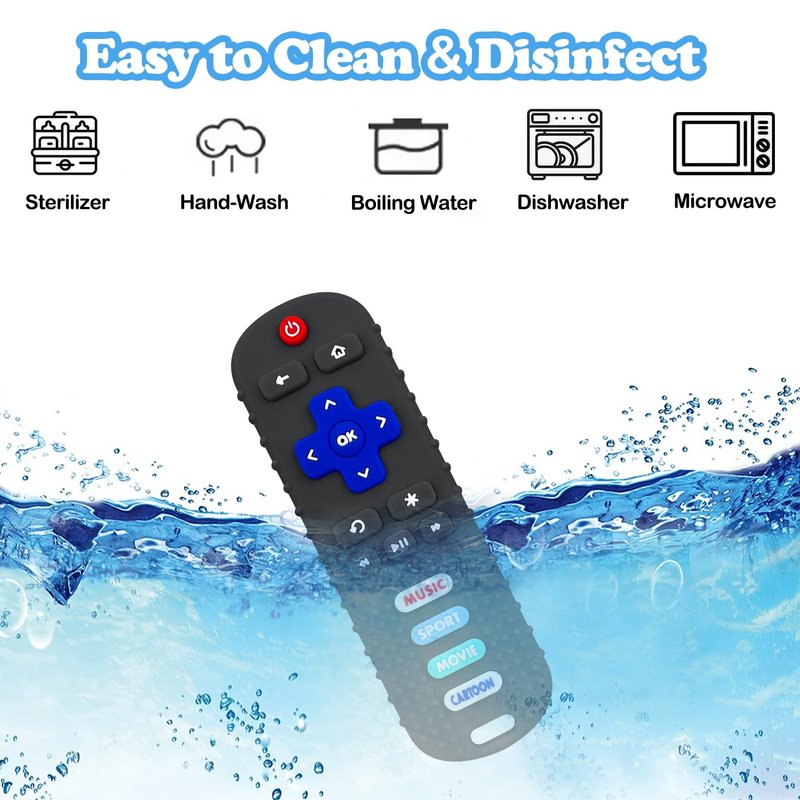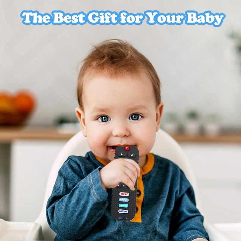 - [Adorable Design]: The remote control teether toy is perfect for those toddlers who loves playing with remote. Such a great replacement of the real TV remote. No more slobbery remotes! Comes with a TV remote shaped chew toy.