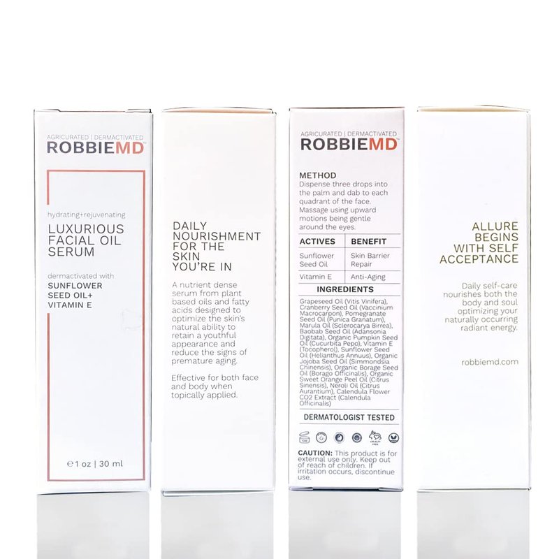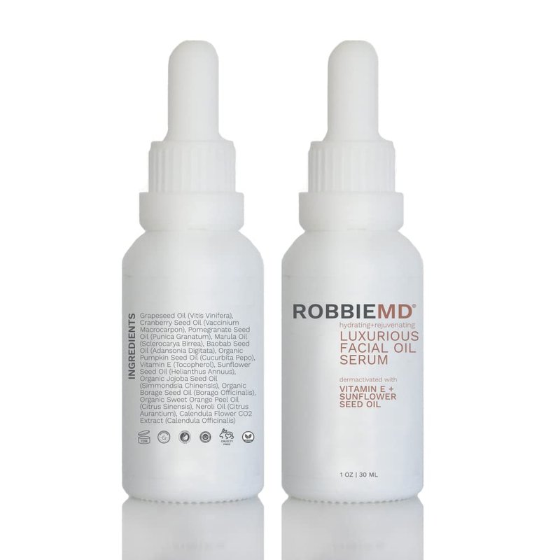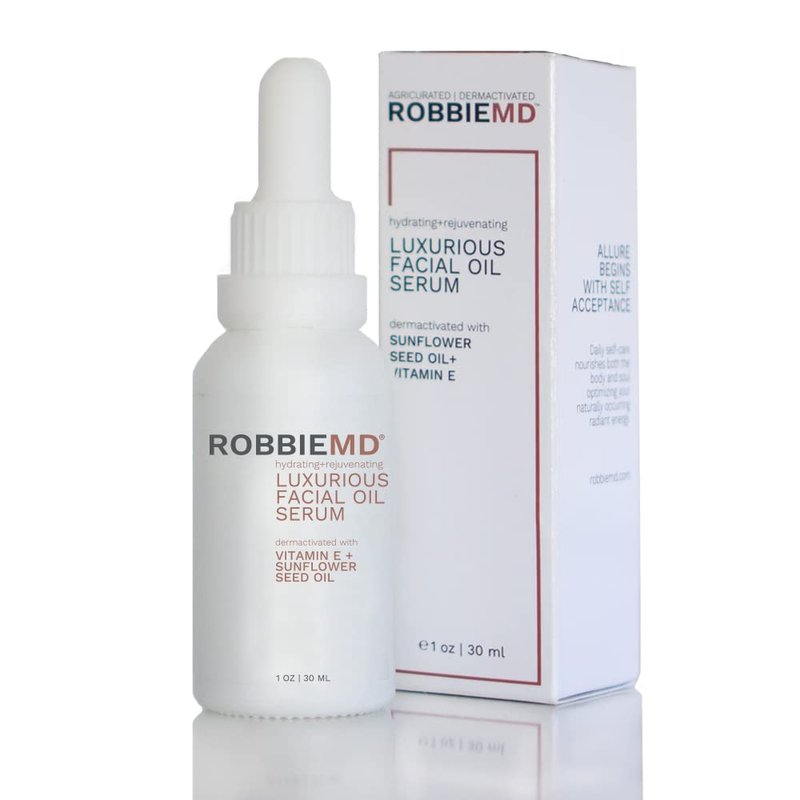 RobbieMD Luxurious Facial Oil Serum, Cold Pressed Organic Sunflower Oil and Vitamin E for Deep Hydration, Soothe Protect Skin Barrier Even Out Skin Tones (1 oz/30 ml)