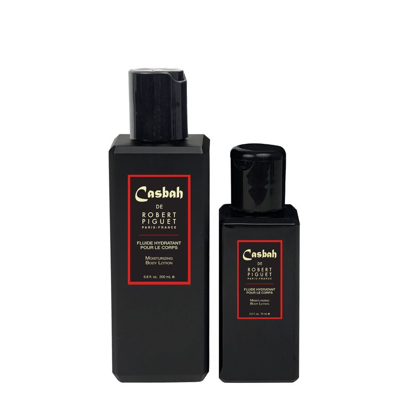 Our proprietary blend of essential oils from the original Casbah fragrance are masterfully blended into a luxurious lotion confit. Filled with skin-loving vitamin E, this fast absorbing but highly moisturizing formula will leave your skin beautifully nourished with the smokey scent of Casbah. Available in 6.8 Fl Oz/ 200 ml & 2.5 Fl Oz/ 75 ml