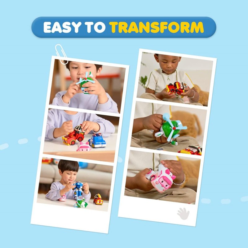 - ✔ 2-IN-1 Rescue Bot Car Toy: Kids ages 1 and up can enjoy twice the fun with 2 modes of play from our POLI Toys, easily converting these Mini Bot Racers from car to robot and back again.