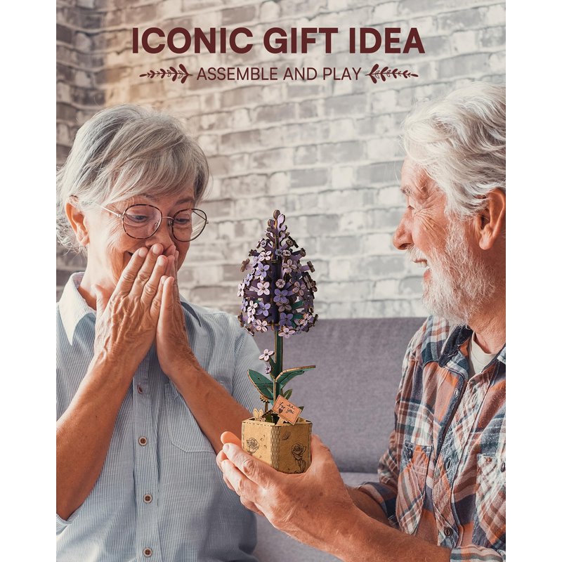 - 【ROBOTIME Model Flower Kit】Our Timeless Wooden Lilac, with its exquisite details and pre-colored petals, radiates vibrant, lasting beauty in any room. Symbolizing enduring love and joy, these flowers never wilt, making them a perfect keepsake.