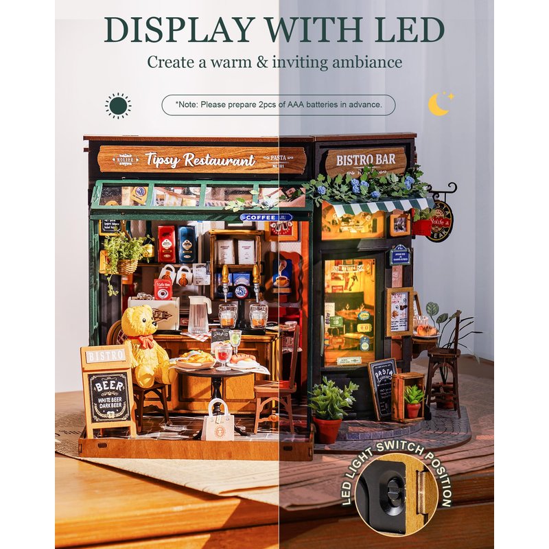 - 【Immersive Experience】 Our DIY miniatureTipsy Restaurant kit features a carefully designed slot-together structure for an easy assembly process, taking just about 6 hours to bring to perfection. The built-in LED soft lighting system further enhances its beauty and authenticity, offering enthusiasts a creative experience filled with storytelling and immersion.