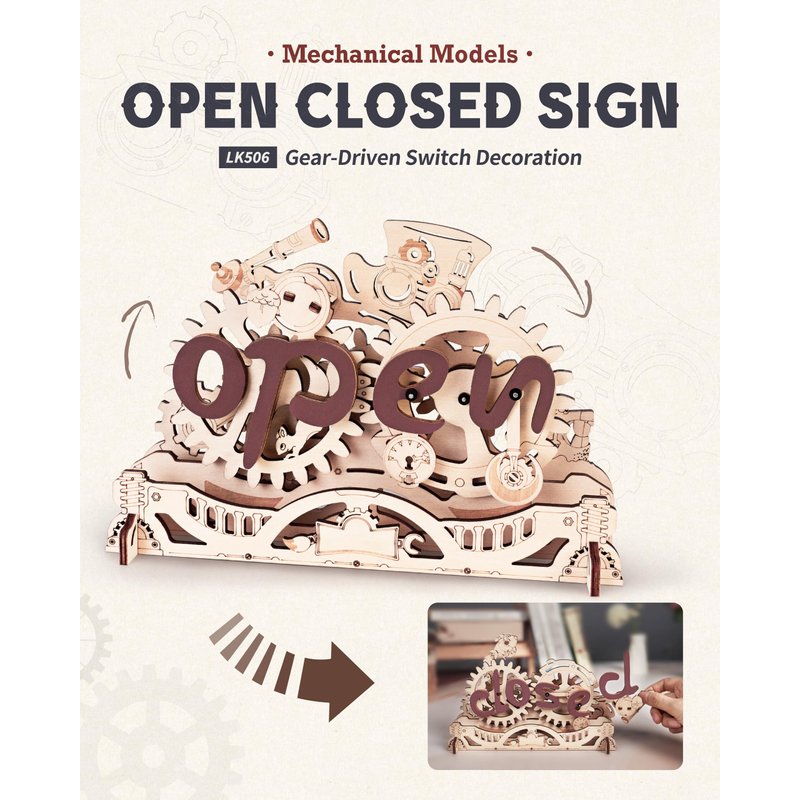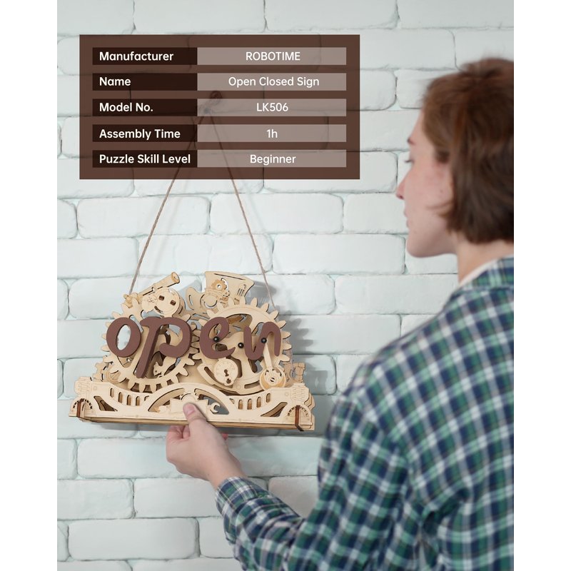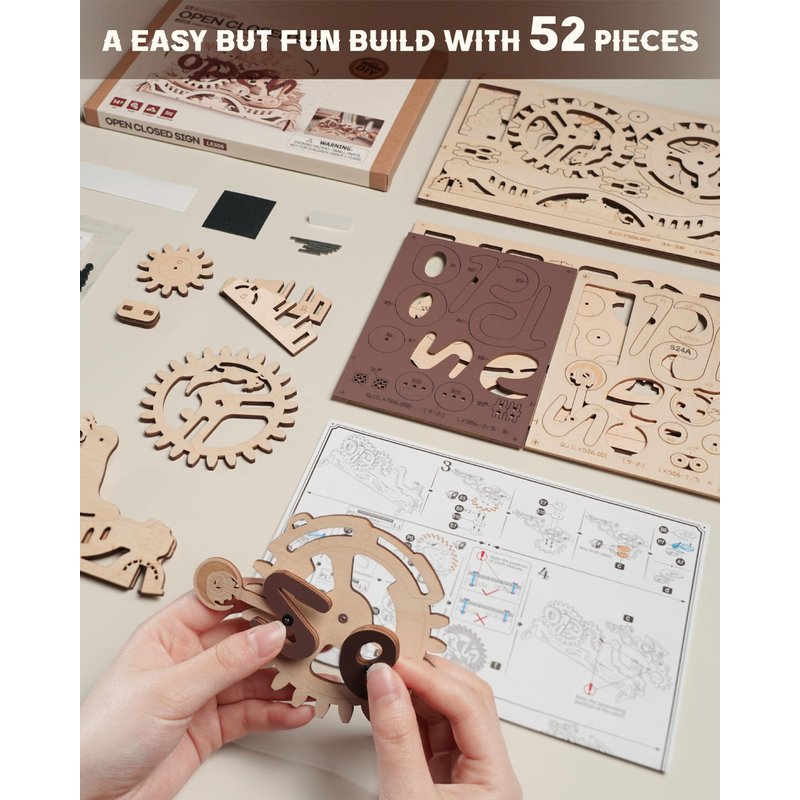 ROBOTIME LK506 Open Closed Sign 3D Puzzle, Mechanical Wooden Model to Build for Beginners, Wooden Puzzles for Adults & Teens, Home Office Cafe Aesthetic Decor Unique Gift
