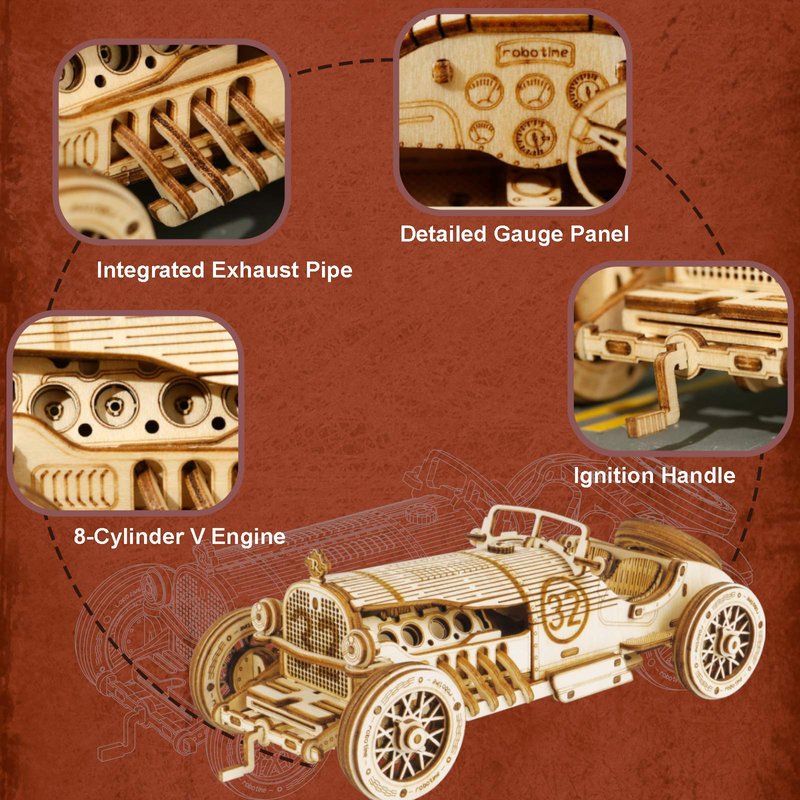 ROBOTIME Model Car Kits - Wooden 3D Puzzles - Model Cars to Build for Adults 1:16 Scale Model Grand Prix Car