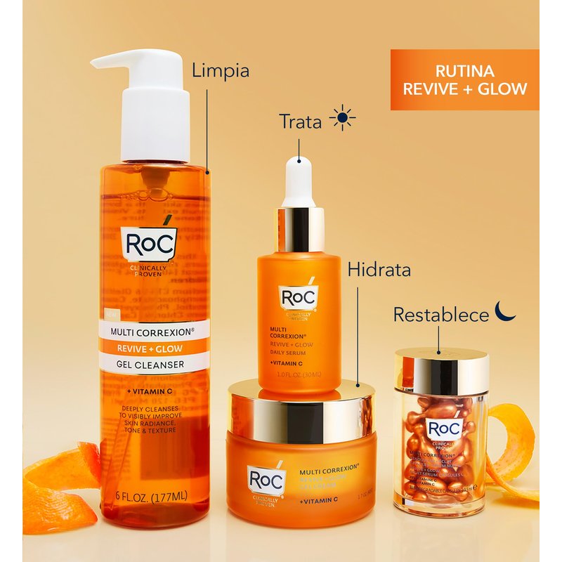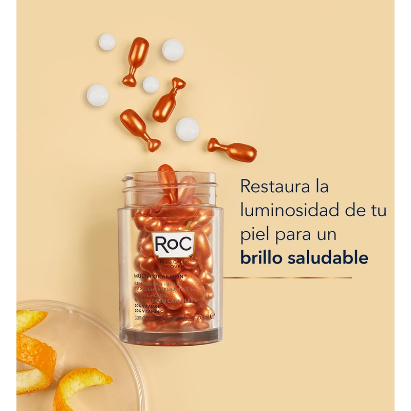 RoC Multi Correxion Revive + Glow 20% Pure Vitamin C Night Serum Capsules for Brightening, Dark Spots, and Texture, Stocking Stuffers for Men & Women, 30 count