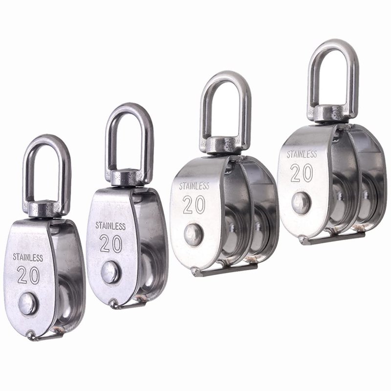 - TOP QUALITY - Made of high-quality stainless steel material, the whole pully has higher hardness, moisture resistance, corrosion resistance, rust resistance than ordinary materials. Rugged construction and shock-resistant design make it extremely rugged.