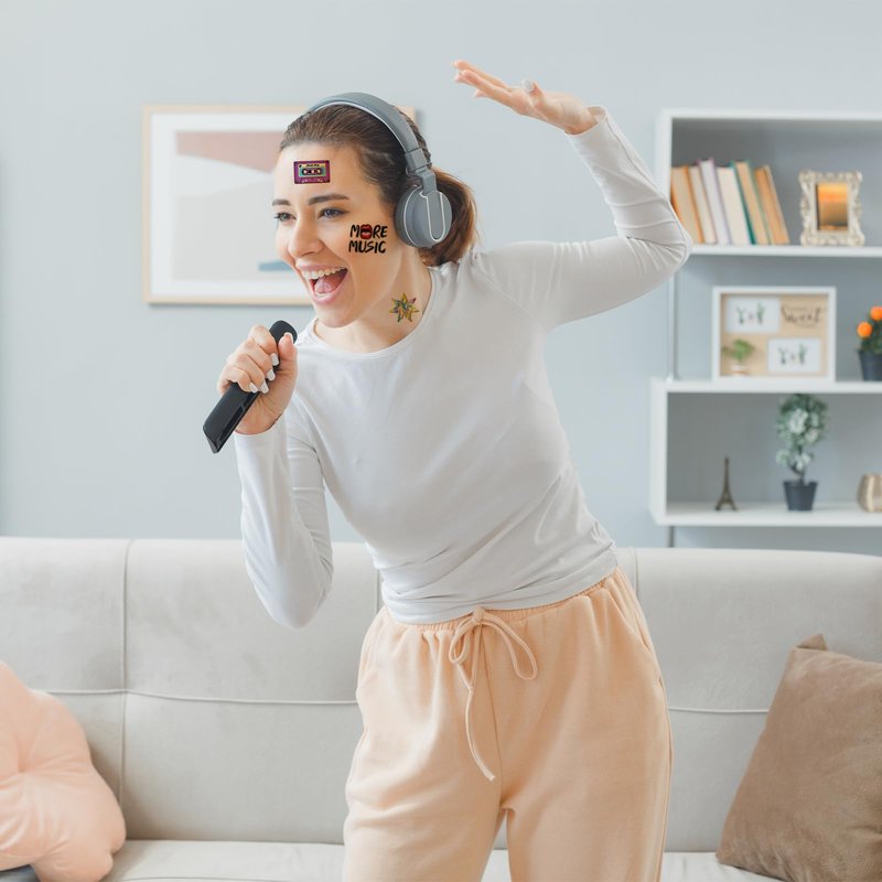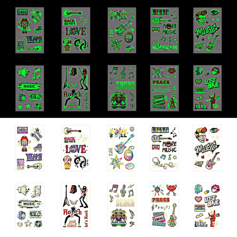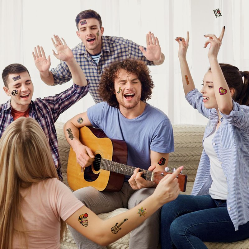 - Design:The rich color structure and design of tattoo stickers reflect the music lover's madness and love of music.They are composed of various rock and roll elements such as musical notes,dj playing disc jockey,instruments, rock, headphones, sheet music and more!