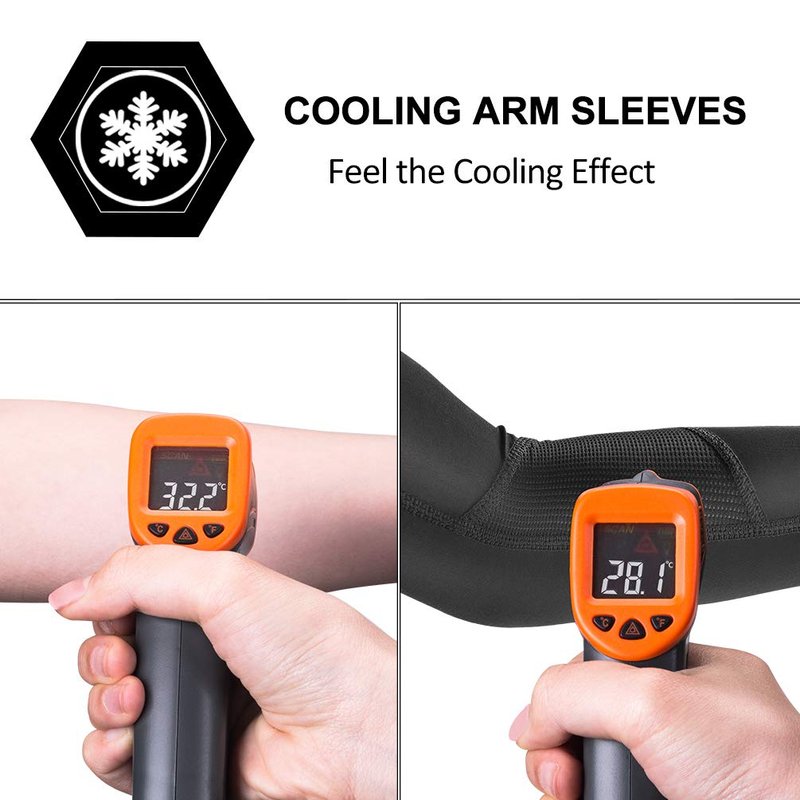- 【COOLING】:When wearing, you can feel an instant drop in skin temperature. Cool feeling helps you get rid of the heat. Cooling arm sleeves that are made of ice silk fabric gives you an instant cooling and soft effect on the touch.