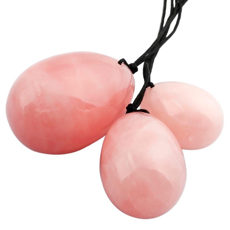 Rockcloud Rose Quartz Set of 3 Drilled Yoni Eggs with String, Massage Stones for Women to Train Pelvic Muscles Kegel Exercise