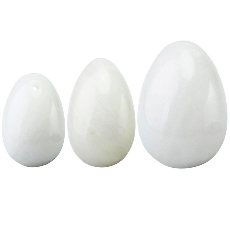 rockcloud White Jade Set of 3 Drilled Yoni Eggs with String, Massage Stones for Women to Train Pelvic Muscles Kegel Exercise