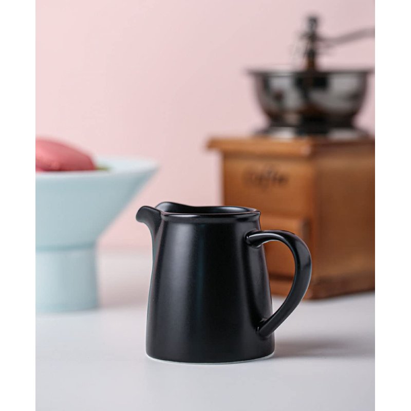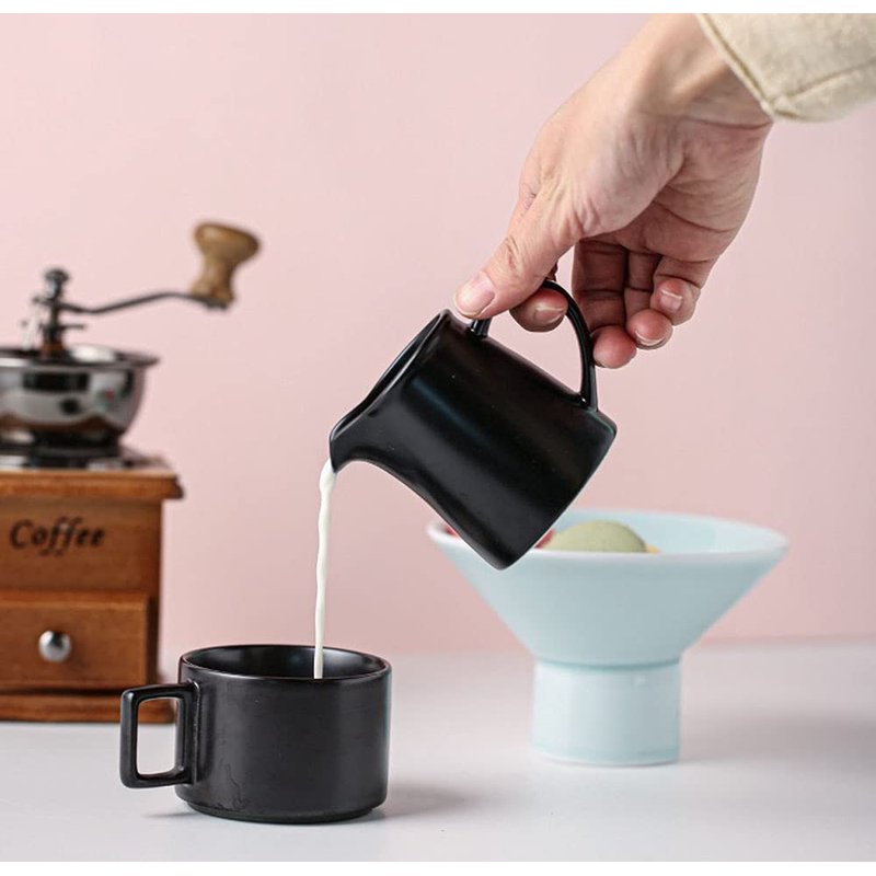 RockTrend Black Mini Simple Ceramic Coffee Milk Creamer Pitcher with Handle, Set of 2