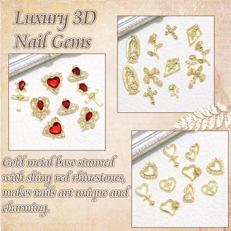 - Multiple Design:This nail art jewelry pack has multiple style nail charms,including cross,scepture,roses,virgin mary,heart and more.Each one is beautifully design,adding glamor to your nails art.