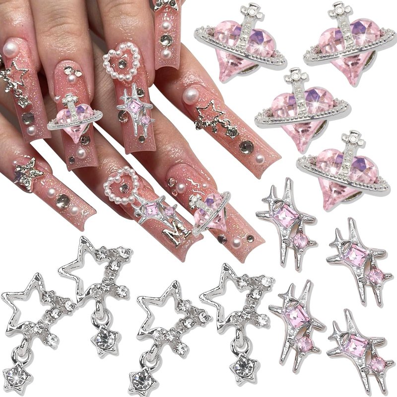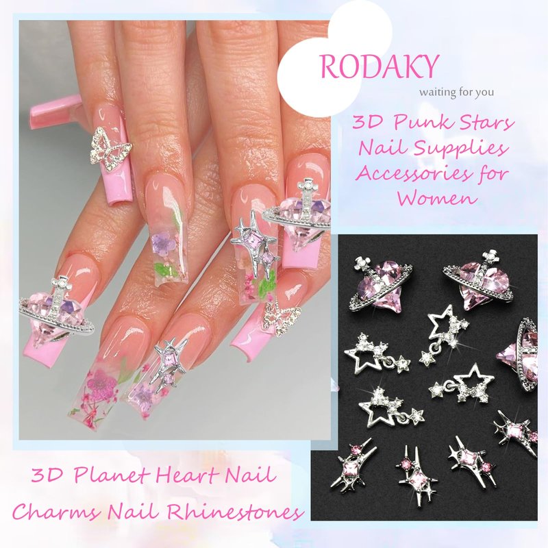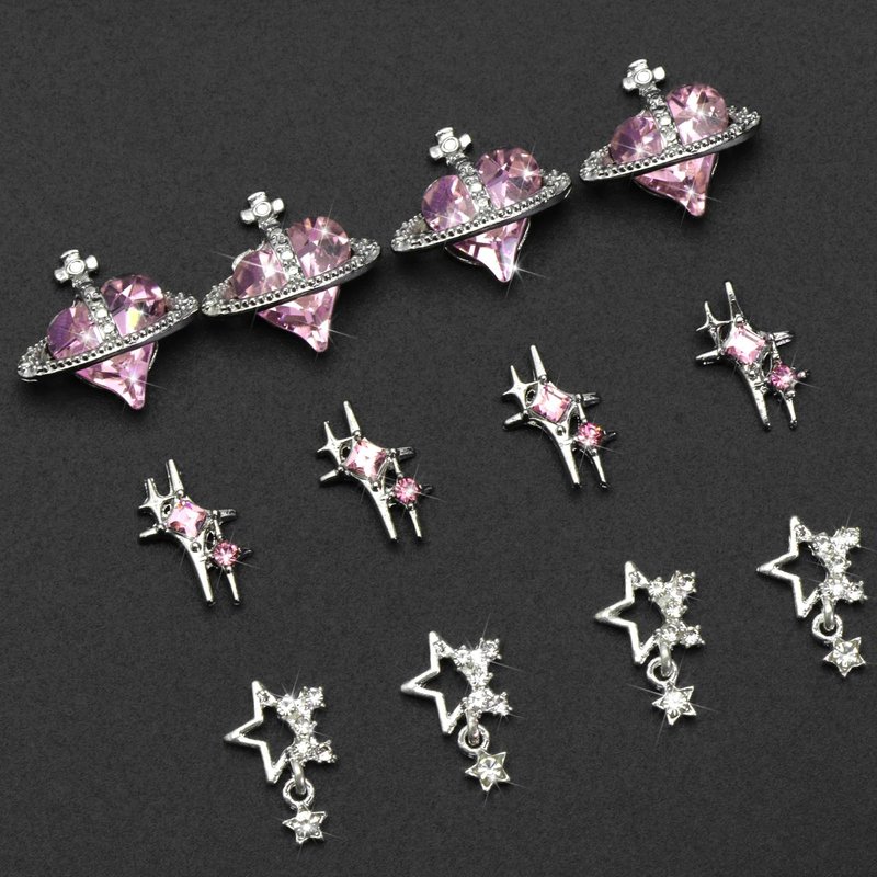 - Value Pack:The package contains 12Pcs Silver Saturn Planet nails charms with pink crystal rhinestone. Enough quantities to meet your nails daily design needs, make your nail to be charming, which can easily match your style and meet your daily needs.