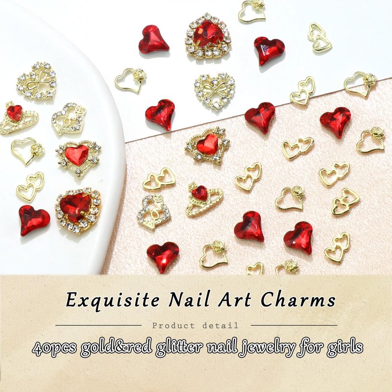 - Value Pack:One pack contains 40pcs nail charms in 8 different style heart design.Multiple style and enough quantity allows you to have more nails diy experience.