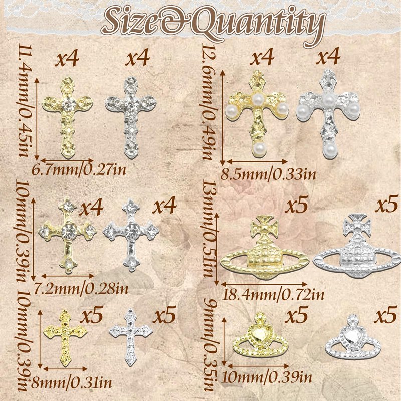 - Value Pack:You will receive 54pcs nail art gems in 6 different styles,including 4 different design cross charms and 2 different planet charms.Each style is available in gold and silver.Ample quantity can satisfy your various needs,allows you to create more different nails art.