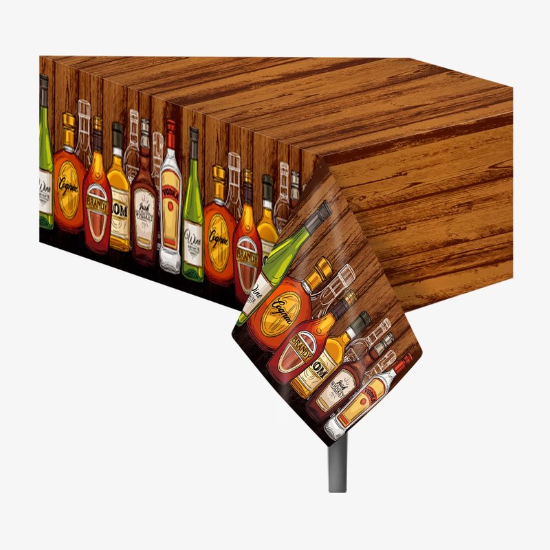 - WHISKEY THEME DESIGN: This whiskey party tablecloth is designed with whiskey beer bottle patterns. This differentiate and creative whiskey theme pattern design will keep your party cheerful and energized.