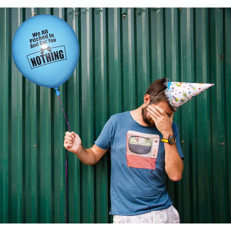 Decorate a little differently with these over the top rude balloons. Imagine giving someone a balloon that says "We all pitched in and got you nothing." Hahah, the look on the recipients face will be priceless. Containing five different sayings, one or all of them will fit the perfect occasion. Adding a little color to your event and topping it off with a bit of snarkyness. These Anti Happy Birthday balloons are sure to spread both frowns and smiles.
