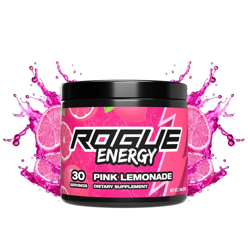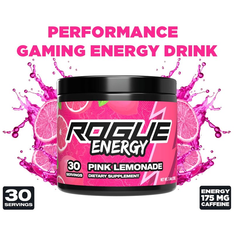 Rogue Energy Drink Powder for Long Gaming Hours - Gaming Energy Powder for Mental Focus - Sugar & Gluten Free - Gaming Supplement with Caffeine & Vitamins - Made in USA (Pink Lemonade - 30 Servings)