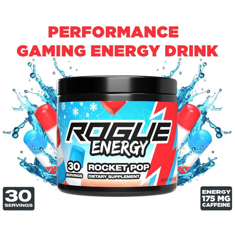 Rogue Energy Energy Drink Powder for Long Gaming Hours - Energy Powder for Mental Focus - Sugar and Gluten Free - Gaming Supplement with Caffeine and Vitamins - Made in USA (Rocket Pop - 30 Servings)