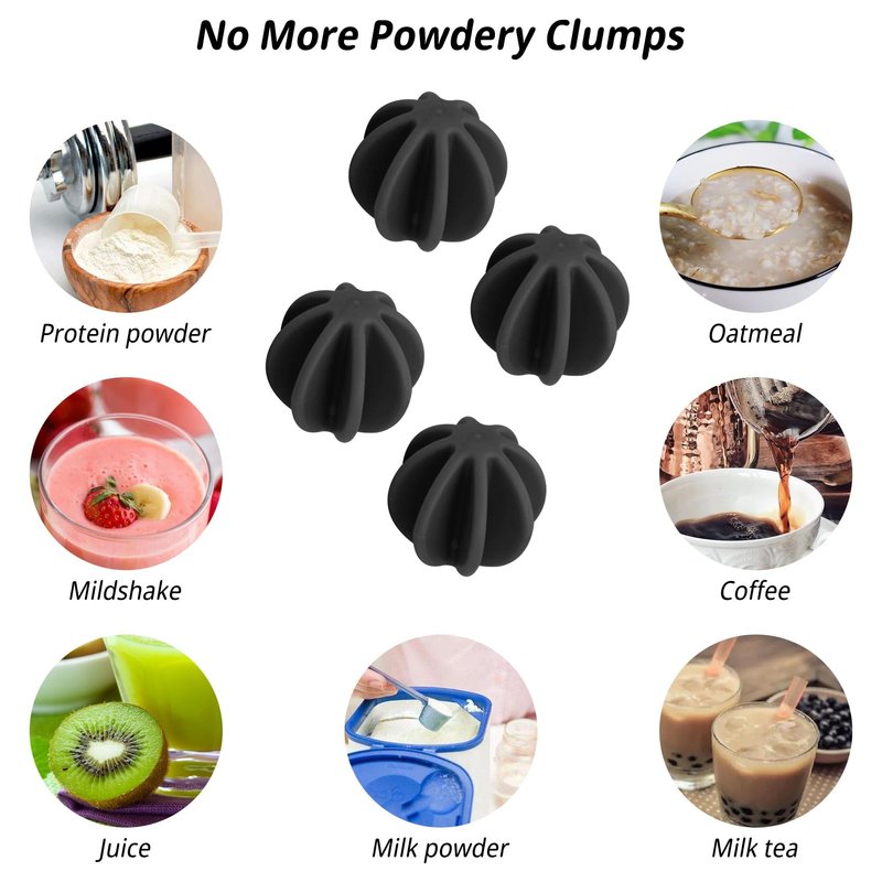 Rohesia Shaker Balls Shaker Bottle Ball Replacement Milkshake Protein Powder Whisk Ball for Shaker Cup Bottle (4 Pcs Black Plastic-A)