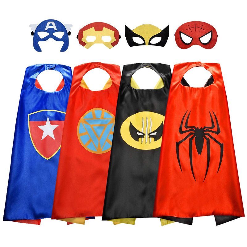 - The Child's Heroic Dream - Your children probably love playing with kids dress up clothes daily. With our popular costumes for boys, they can enjoy wearing their glow in the dark superhero capes and superhero masks while they playing heroes with friends. Each cape measures 27.5*27.5 inches, creating an ideal canvas for epic superhero transformations.