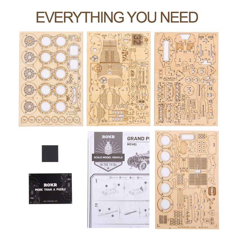 ROKR 3D Wooden Puzzle for Adults-Mechanical Car Model Kits-Brain Teaser Puzzles-Vehicle Building Kits-Unique Gift for Kids on Birthday/Christmas Day(1:16 Scale)(MC401-Grand Prix Car)