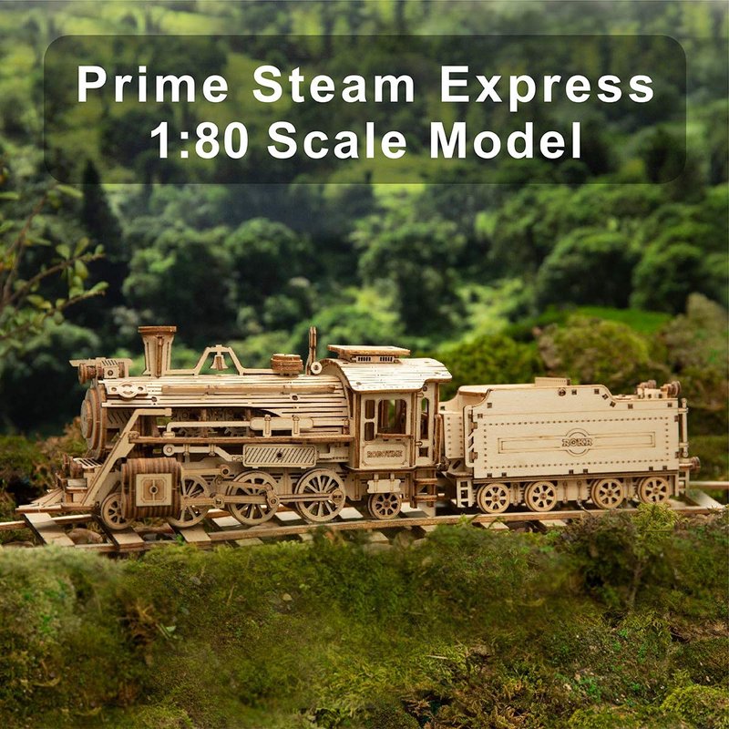 ROKR 3D Wooden Puzzle for Adults-Mechanical Train Model Kits-Brain Teaser Puzzles-Vehicle Building Kits-Unique Gift for Kids on Birthday/Christmas Day(1:80 Scale)(MC501-Prime Steam Express)