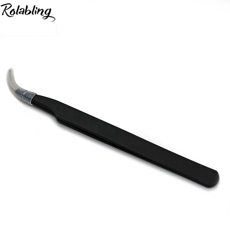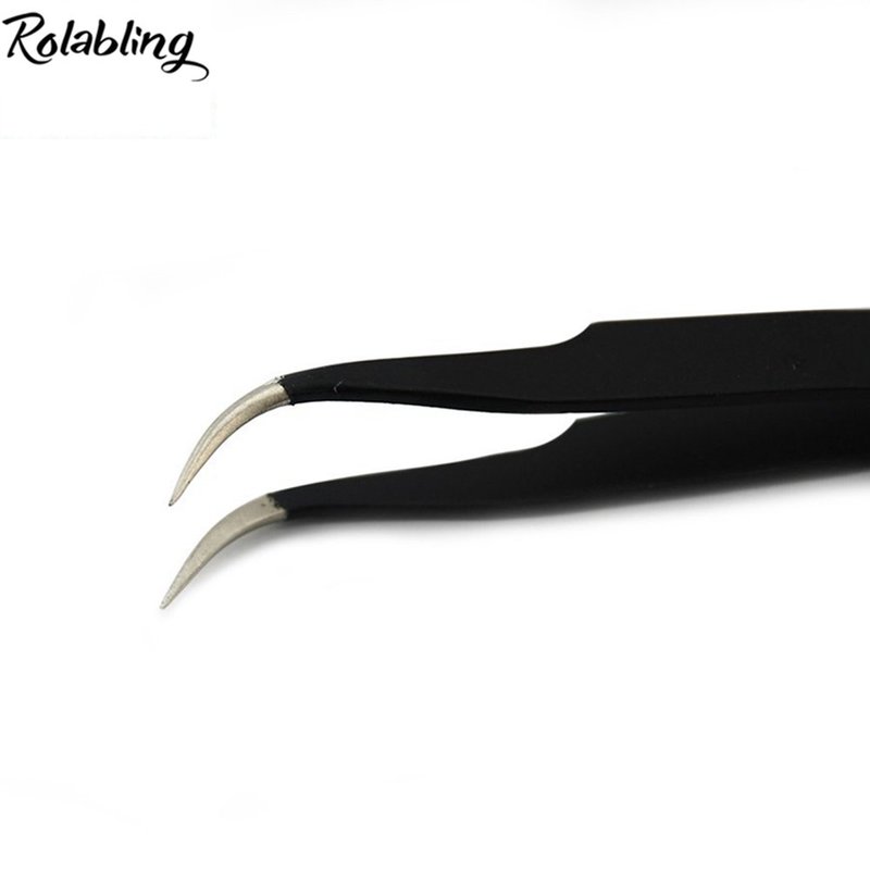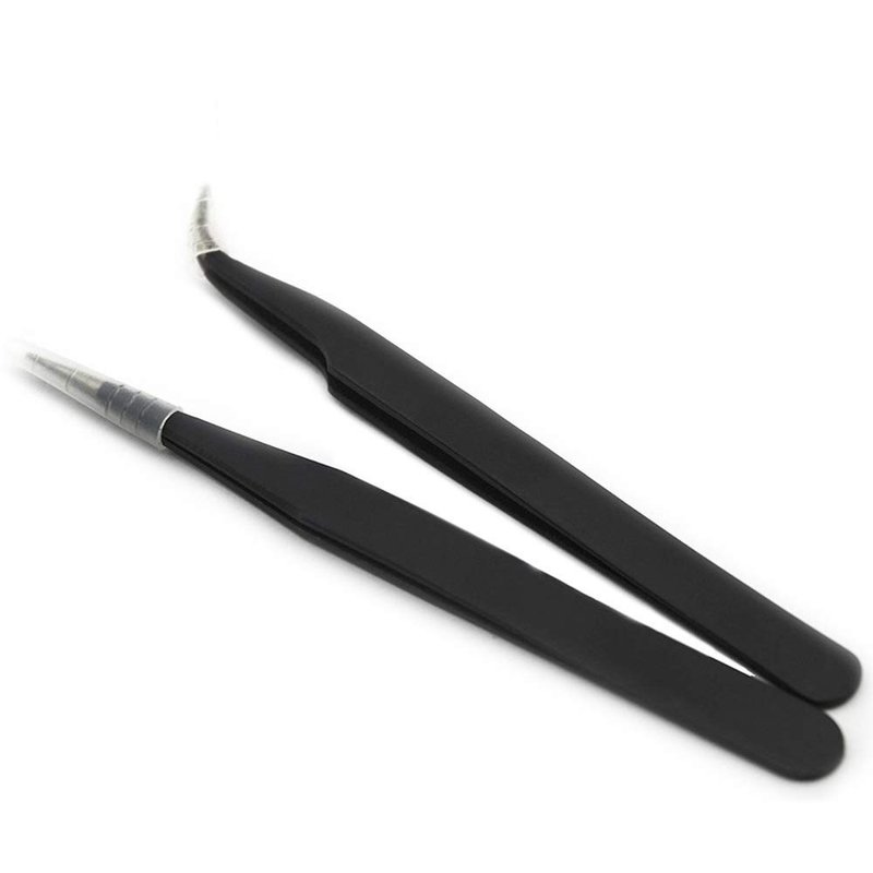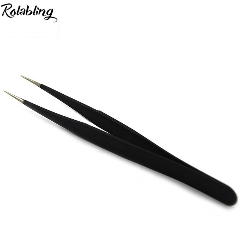 Rolabling 2pcs Elbow & Straight Black Nail Tweezers Rhinestone Picker Manicure Nail Art Tool (Set-1)