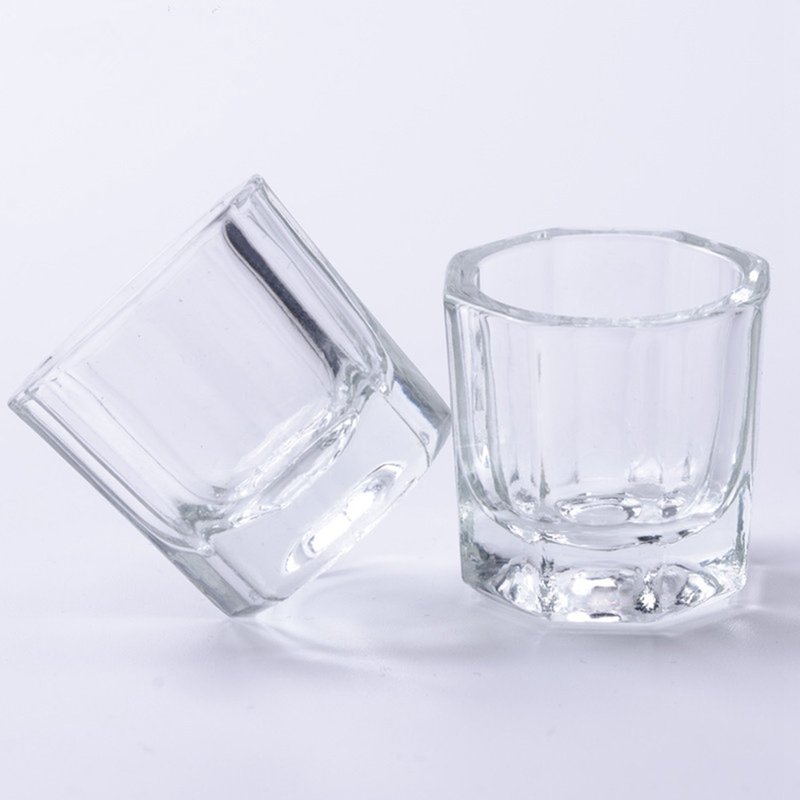Rolabling Glass Crystal Dappen Dish Nail Art Acrylic Powder Holder Liquid Cup for Manicure Tools(2 pcs no lid)