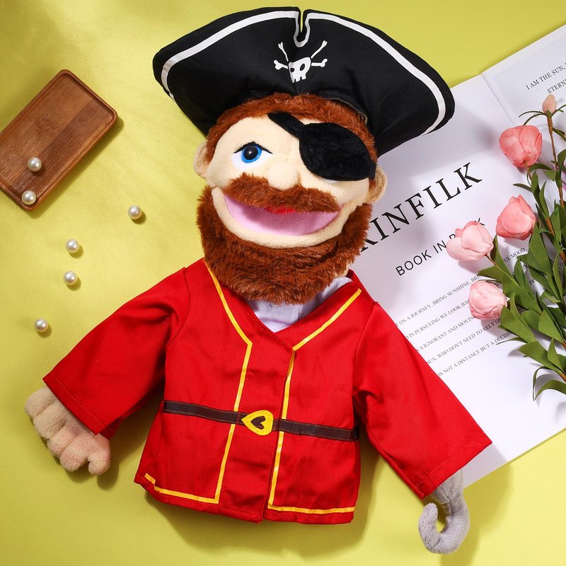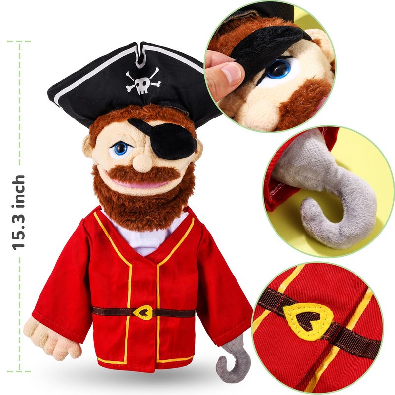 Role Play Hand Puppets Hand Plush Chef Doctor Fireman Pirate Detective Athlete Nurse Worker Hand Puppet Toys Puppets for Kids Storytelling Imaginative Pretend Play Teaching Preschool(Pirate)