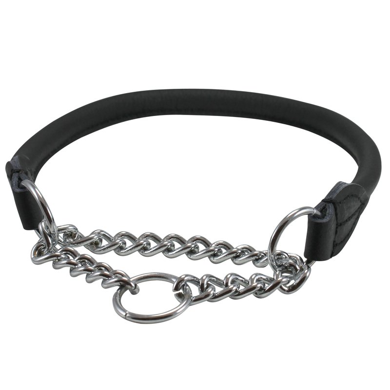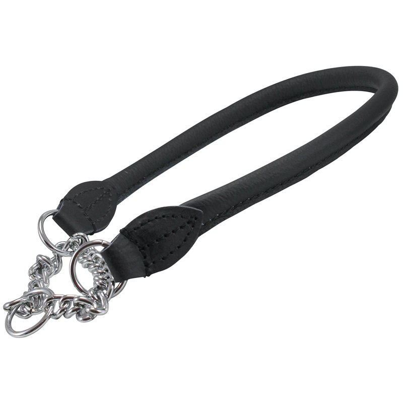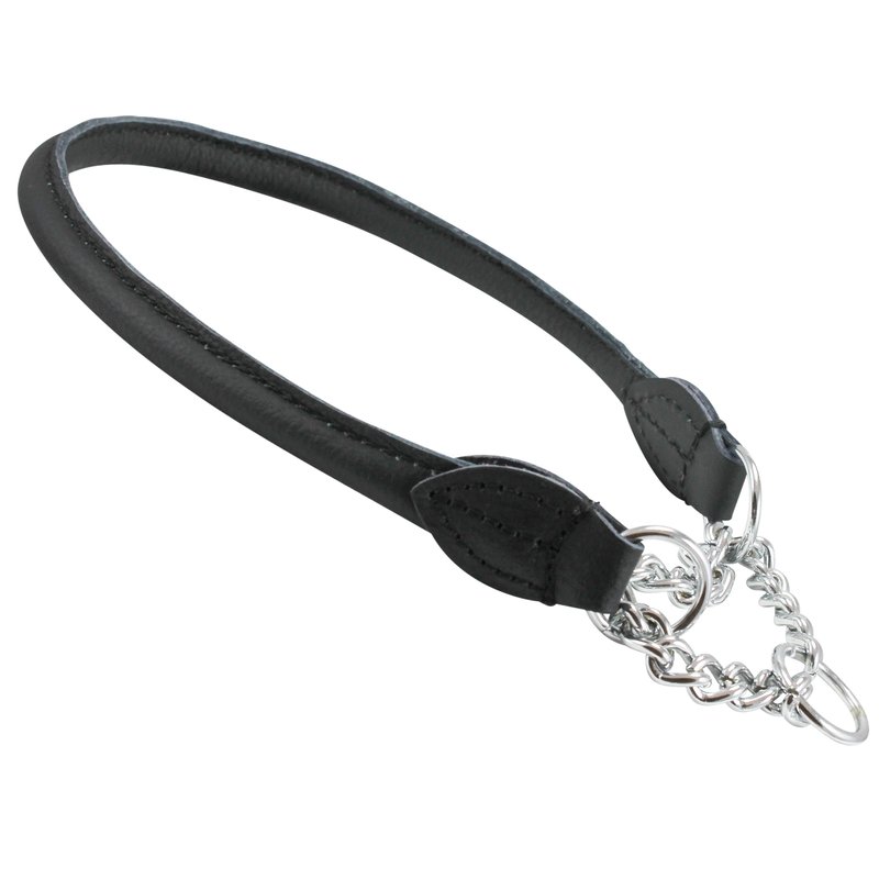 Rolled Genuine Leather Martingale Dog Collar Choker Black 7 Sizes (#6 - Neck Circumf.15.5"-17.5")