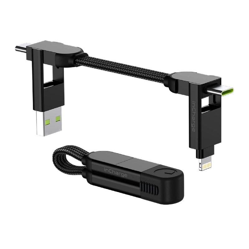 Rolling Square inCharge X, Multi Charging Cable, Portable Keychain Charger Cable, 6-in-1 with 100W Ultra-Fast Charging Power, Lava Black, Multi Charger