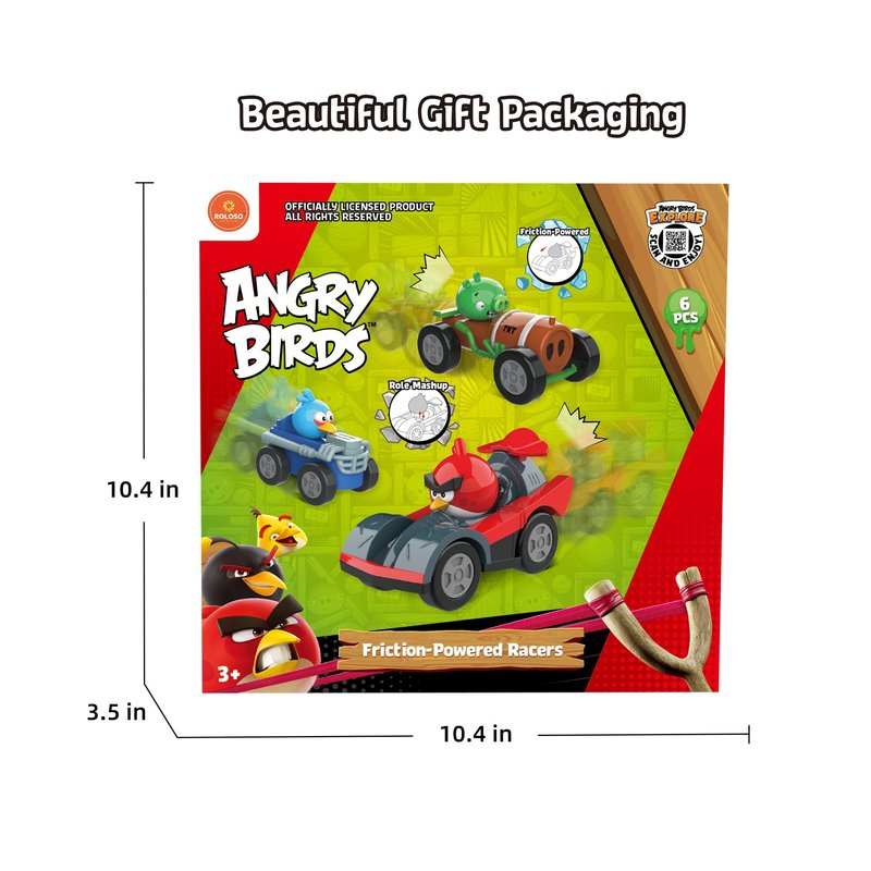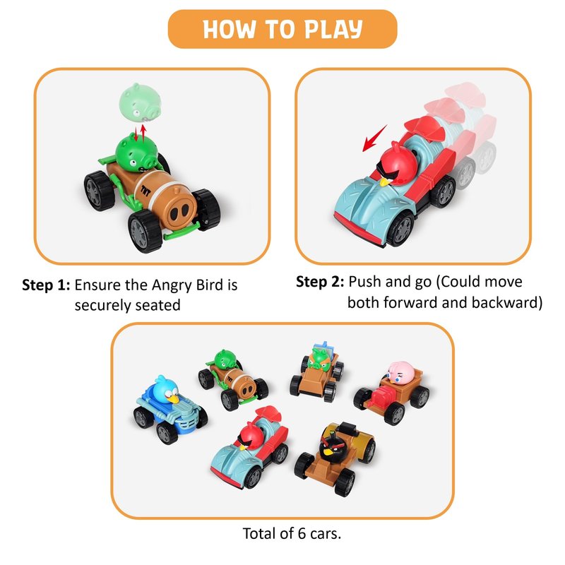 - Collectable Set for Everyone - This toy set has all the 6 cars in the whole collection. There is something for everyone. This toy is for kids (3+), teenagers and adults of all ages that are interested in the Angry Birds game.