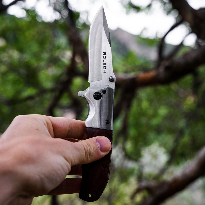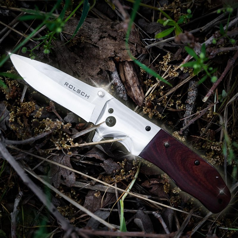 ROLSCH - Gentleman’s Folding Pocket Knife - Spring Assisted sharp blade with Rose Wood Handle - Pocket Knife for Men - Great Folding Knife for Camping Hunting - EDC and Outdoor Gear - Perfect as a Birthday, Christmas, Fathers Day, or Groomsmen’s Gift