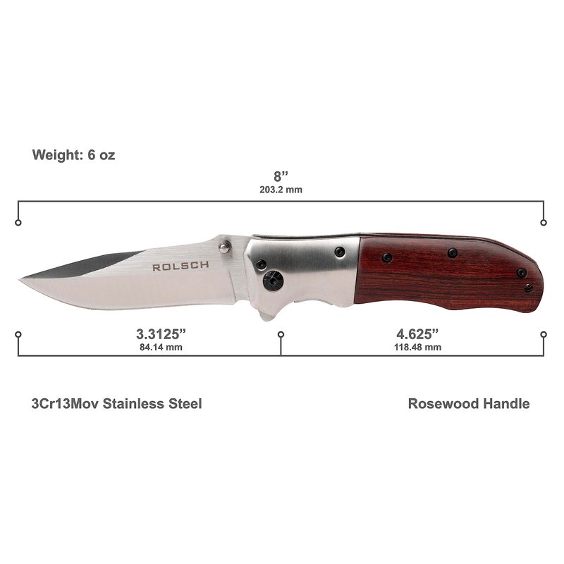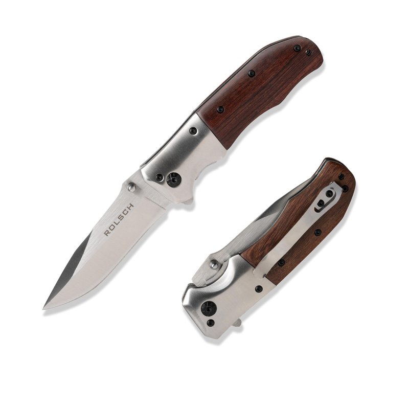 Rolsch - Wood handled Pocket Knife - Spring Assisted Folding Knife – Stainless Steel Blade and Rosewood Handle with Pocket Clip - Great Folding Knife for Hunting, Camping, Survival, Tactical, EDC